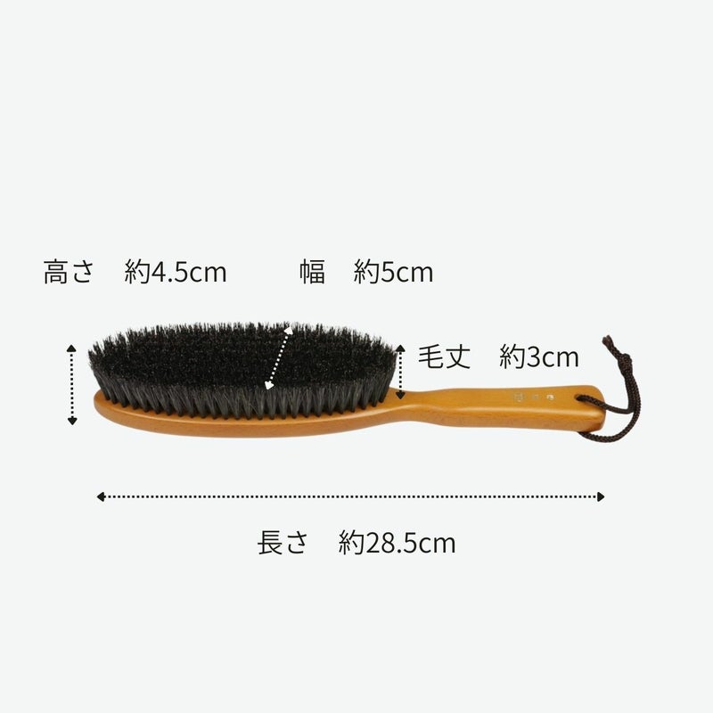 ブラシ部には中国 重慶産のしなやかで腰の強い豚毛を使用。静電気を起こしやすい化学繊維を一切使わずに、天然の素材にこだわって丹念に仕上げたブラシです。