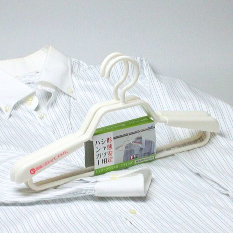 ワイシャツの型崩れを防ぐために、シャツの形から生まれたハンガーです。 襟の形をホールドできる形状をもち、40cm~52cmまで肩がスライドするので、女性用にも男性用にもフィットいたします。