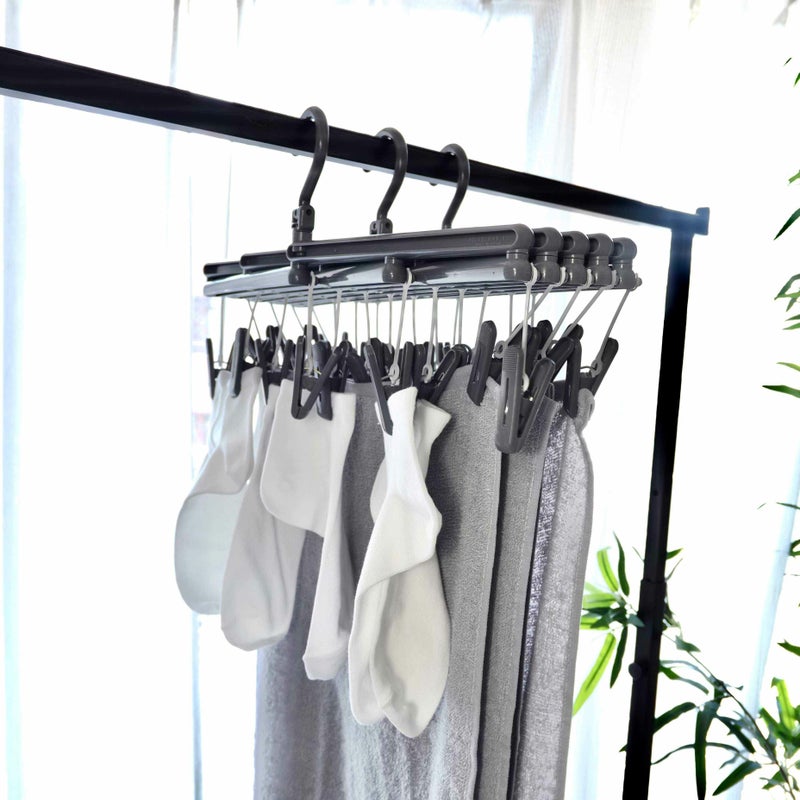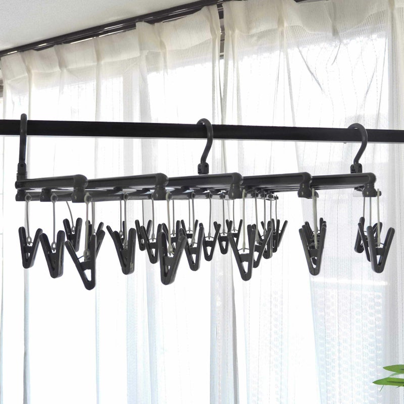 洗濯物の量やスペースに合わせてサイズ調整できる伸縮タイプのハンガーです。 ★フックが本体に直接付いているので長い洗濯物もしっかり干せて、ベランダ壁面の物干し竿を便利につかえます。