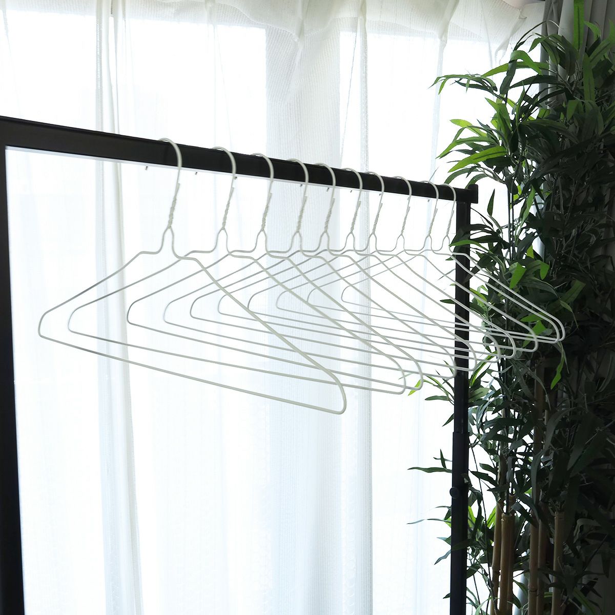 白は光を反射するため、クローゼットや収納スペース全体を明るく、広々と清潔感のある空間に見せてくれます。特に、暗くなりがちなクローゼットの中を明るくしたい場合に効果的です。ショップのディスプレイでも、商品の色を際立たせたいときに白いハンガーが使われることがあります。 白はニュートラルカラーなので、どんな色の洋服をかけても違和感なく馴染みます。服の色を邪魔せず、本来の色合いを引き立ててくれます。 クローゼットを明るく、すっきりと、そして清潔感のある印象にしたい方におすすめです。 ※スーツやジャケットには使用しないで下さい。