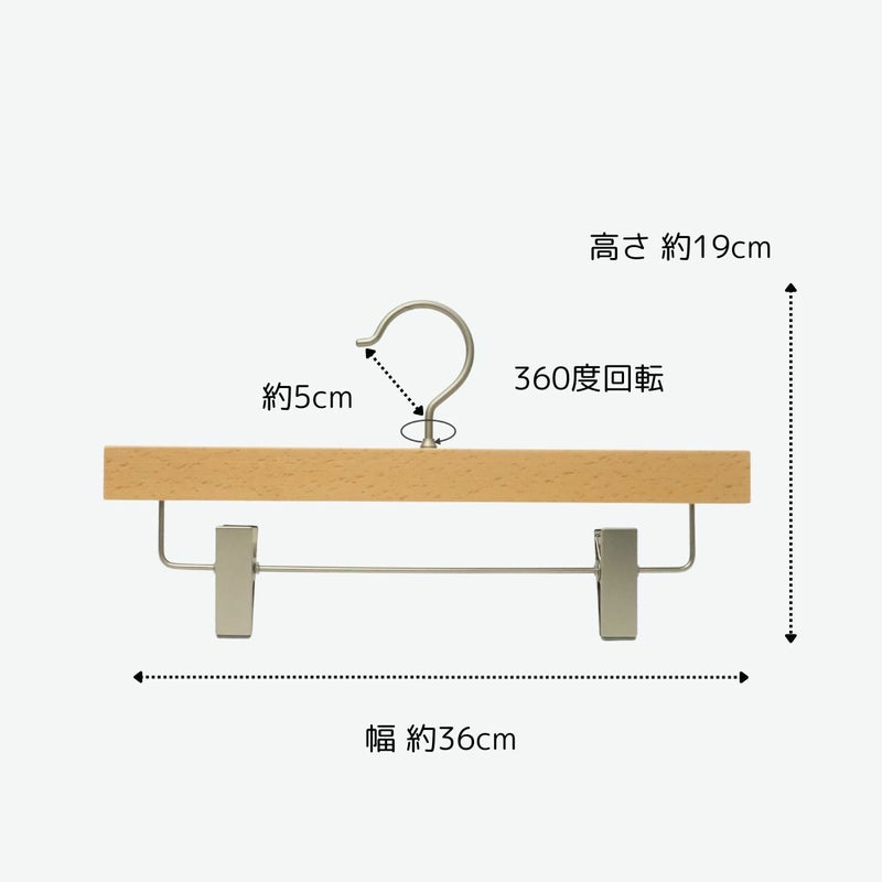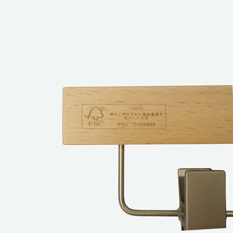 商品名 森を守るハンガー FSC認証 ボトムハンガー 1~5本セット ナチュラル 36cm クリップ付き 肩厚2cm HNO-201