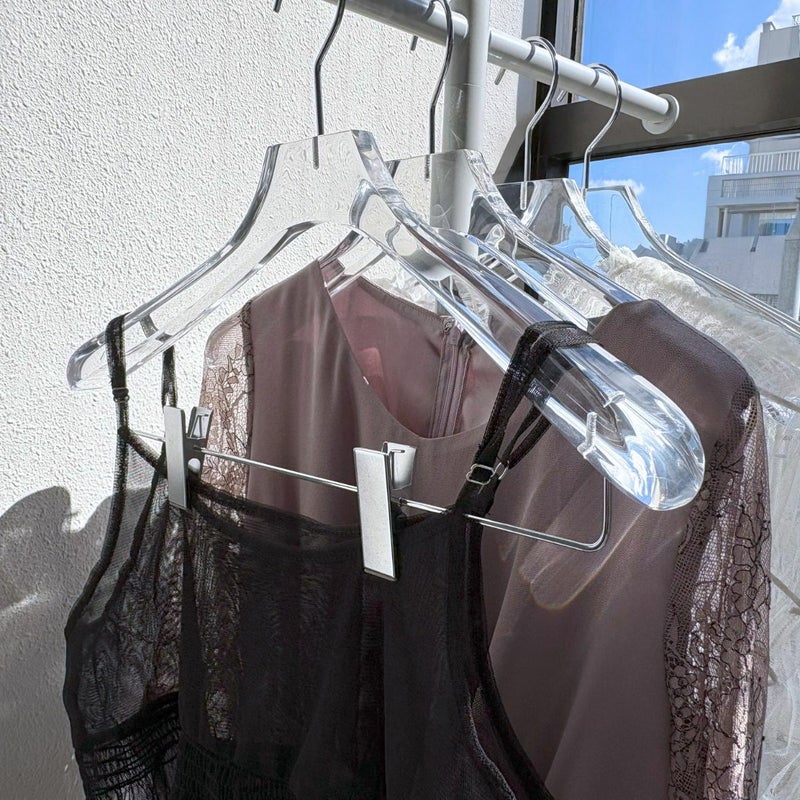ガラスのような透明感が魅力のアクリル製のハンガーです。