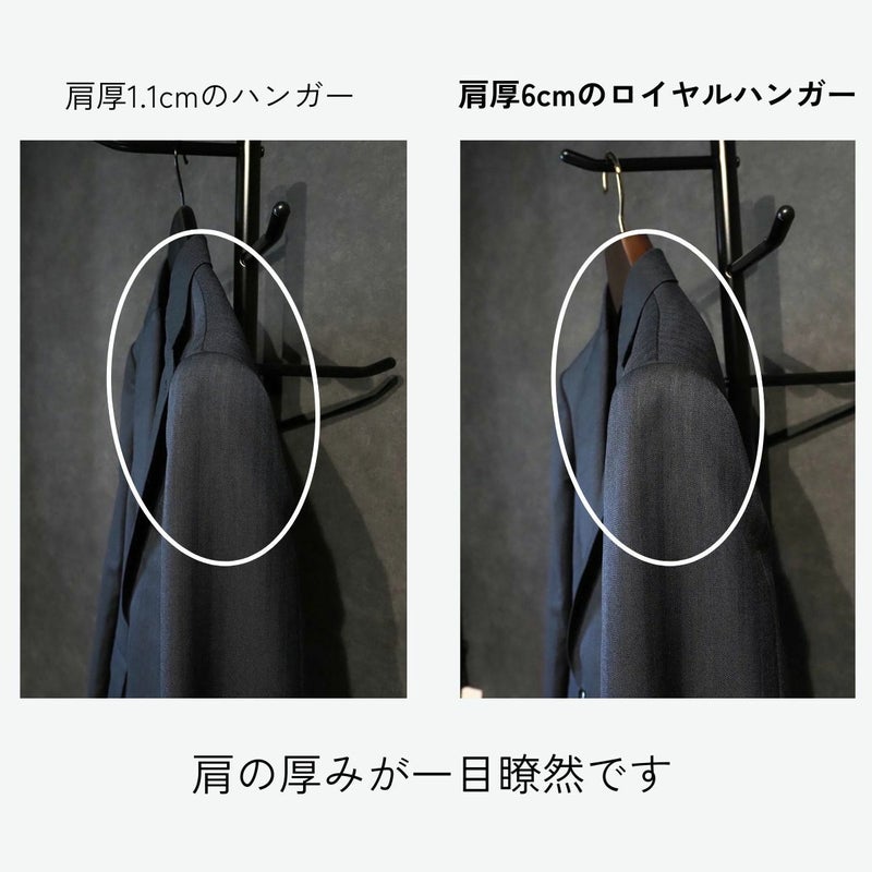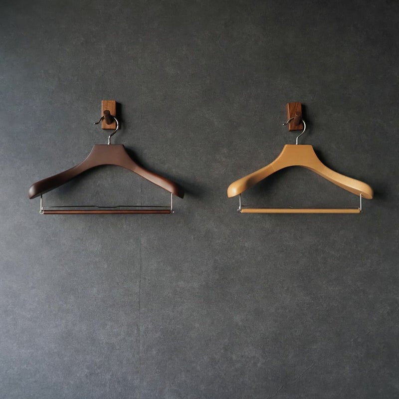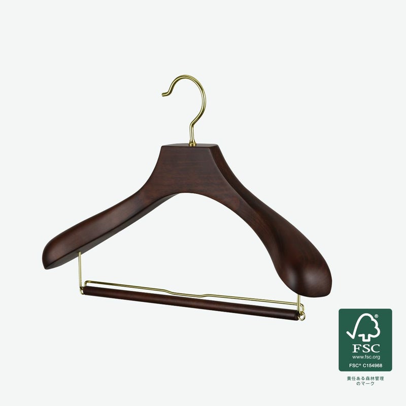【FSC®認証材使用:未来へつなぐサステナブルな選択】 このハンガーは、環境に配慮し、FSC®認証材を使用して製造されています。 FSC®マークは、森の生態系、社会、経済的な持続可能性を守って管理された木材の証です。このハンガーを選ぶことは、SDGs達成への貢献となり、お客様のクローゼットから無理なく森の豊かな恵みを未来へつなげる行動となります。 【服の形を守る「立体美」を追求した設計】 大切なジャケットやスーツの型崩れを徹底的に防ぐ、機能性を追求しました。 人体工学に基づく前傾フォルム: 人の体に近い前傾した美しいラインと、十分な肩の厚みを持たせています。服がハンガーに沿うことで、シワを防ぎ、服の寿命を格段に延ばします。 グレードアップした肩の丸み: より人体型にフィットするよう、肩のラインをなだらかにし、丸みを増やしました。