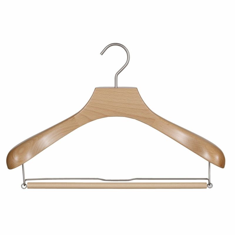 人体工学に基づく前傾フォルム: 人の体に近い前傾した美しいラインと、十分な肩の厚みを持たせています。服がハンガーに沿うことで、シワを防ぎ、服の寿命を格段に延ばします。