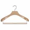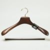 FSC®認証材使用で作られたハンガーです。 FSC®マークは、国際的に認められた厳しいチェック基準をクリアした製品だけにつけることができます。 こちらのハンガーをお選びいただくことで、SDGsの達成に協力することになり、気軽に無理なく森の豊かな恵みを未来へつなげることができます。肩に厚みを持たせて、ジャケットの型崩れを防ぐ機能を追求して作られたハンガーです。人体工学にのっとって前傾させた美しいラインをもっております。 現状販売しております木製オリジナルハンガー以上に、より人体型に近づけるよう、肩のラインをなだらかにし、丸みを増した形状にグレードアップしておりますが、中国で信頼のおける協力工場への技術協力によりこの値段を実現させました。 また通常の木製ハンガーはその構造上二つの木片を真ん中で重ね合わせて作られておりますが、こちらの商品は三つの木片をつなぎ合わせて作られております。ハンガーのフェイス部分につなぎ目がないため、名入れにも非常に適した形状となっております。