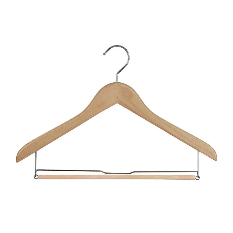 ホテル、アパレルなど企業様向け名入れ用に特別に制作いたしました。厚さ1.7cmでスペースを取らず、スーツやジャケット・制服の型崩れを防ぐハンガーです。 ※木製ハンガーは天然素材の為、多少サイズが異なる場合がありますのでご了承ください。