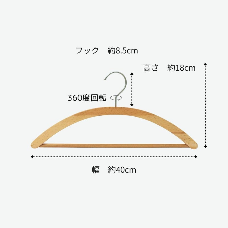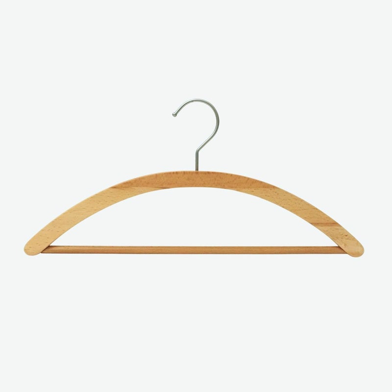 合わせ木ハンガーとは、木材の端材を再利用したサステナブルなハンガーです。 パッチワークのように一つひとつ異なる木目が特徴で、世界に一つだけのデザインを楽しめます。 天然木の温もりを感じさせながらもクローゼット全体の雰囲気を損なわず、服の魅力を引き立てる存在感があります。 日常の小さな行動からサステナブルな選択を始めてみたい方におすすめです。 アーチ型ハンガーは、ニットやスウェット、Tシャツなどのカジュアルな衣類に最適なハンガーです。肩の部分に嫌なシワがつきにくく、ブラウスにもぴったりです。フックが回転するため、場所を選ばずに掛けることができます。