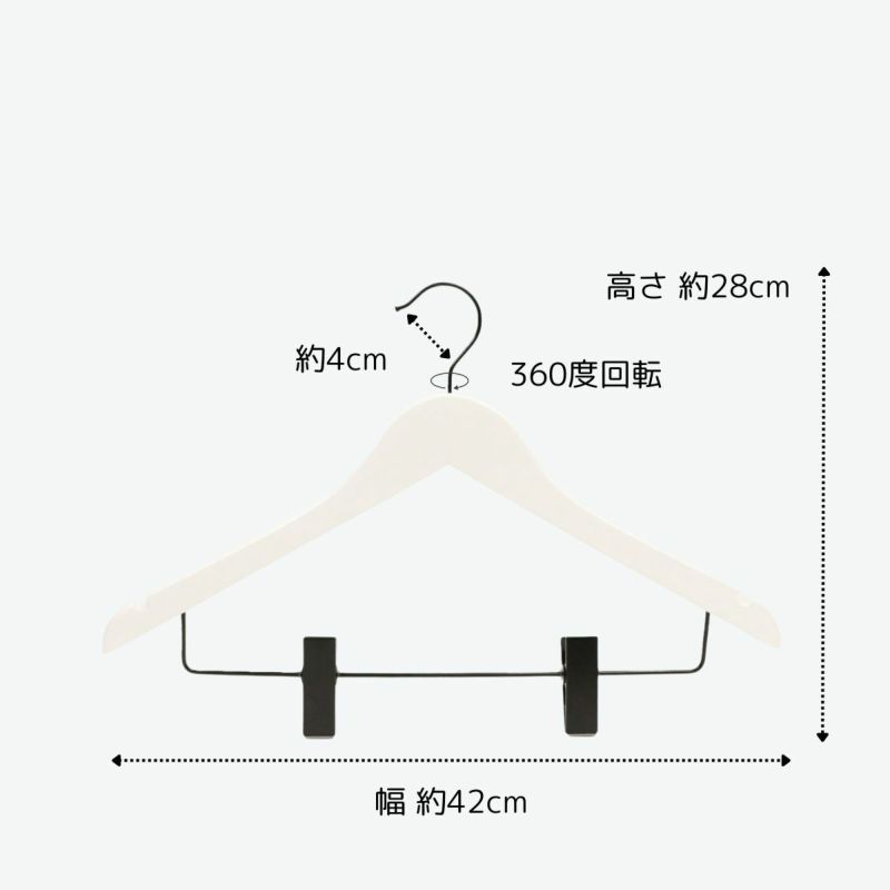 EC-50 木製クリップ付きハンガー ホワイト 42cm