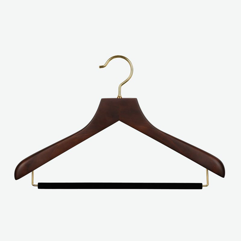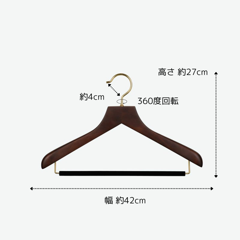 商品名 森を守るハンガー FSC認証 プレミアムハンガー【単品】 ブラウン 42cm 植毛バー付き 肩厚3cm