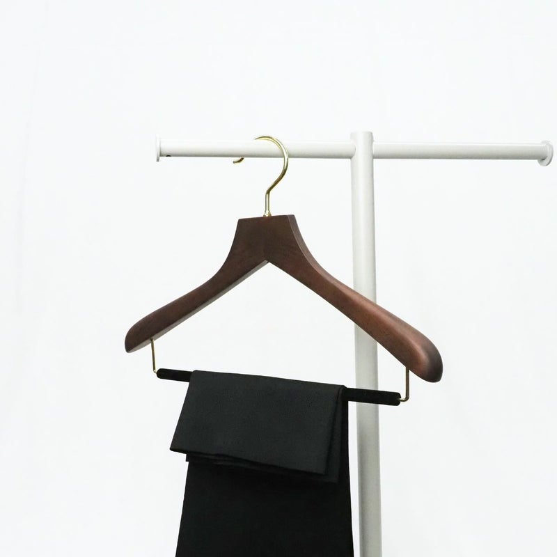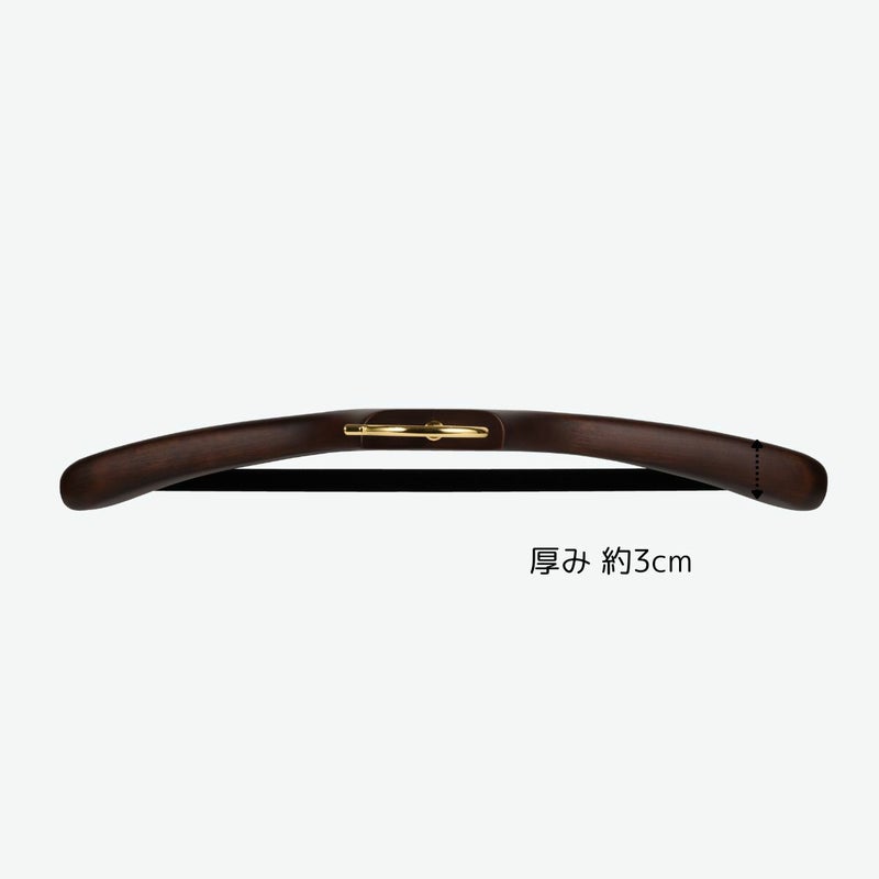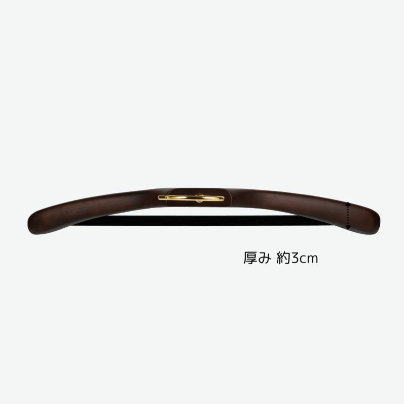 こちらのハンガーは、厚さ3cmで人体工学にのっとった肩のラインが型崩れを防ぎます。卒業記念や周年記念にも使用されている高品質ハンガーは贈り物にもおすすめです。