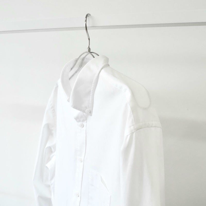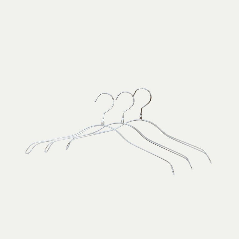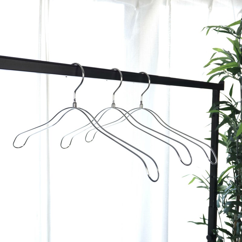 丈夫でサビにくいオールステンレス製ハンガー 型崩れを防止してくれて、干したあとそのまま収納できます。 ステンレスは非常に丈夫な金属で、重い衣類(厚手のコート、ジーンズ、濡れた洗濯物など)を掛けても曲がったり、折れたり、変形したりする心配がほとんどありません。プラスチック製のように経年劣化で脆くなることもなく、永く使い続けられるため、結果的に経済的です。 金属特有の光沢とシンプルなデザインは、クローゼットやランドリールームにモダンで洗練された印象を与えます。生活感が出にくく、統一感を出しやすいため、インテリアにこだわる方にも人気です。