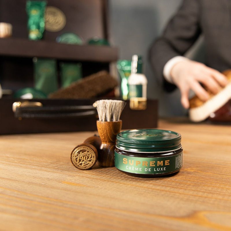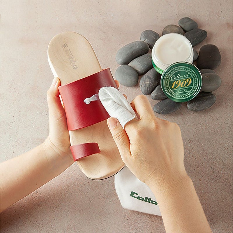 皮革保護クリーム。 皮革への浸透力が高い、有機溶剤を使用しないシダーウッドオイルと、ラノリン等の天然オイルをブレンドしたクリームです。 バランスよく保革・栄養効果、柔軟性を与え、補色性にも優れております。 皮革内部へ行きわたることで微細な皮革繊維に潤いを与え、深みのあるしっとりとした艶が生まれます。 また、フッ化炭素樹脂が撥水効果をもたらせます。