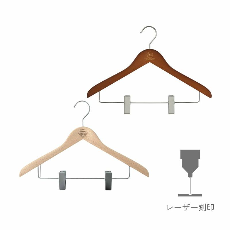 こちらの商品は、ハンガー本体にレーザー刻印がセットになった商品です。必要に応じて紙袋や化粧箱も別途ご購入ください。 厚さ1.7cmでスペースを取らず、ビジネスホテルや旅館で使用されているベーシックなハンガーです。スーツやジャケット・制服の型崩れを防ぐハンガーです。 ※木製ハンガーは天然素材の為、多少サイズが異なる場合がありますのでご了承ください。
