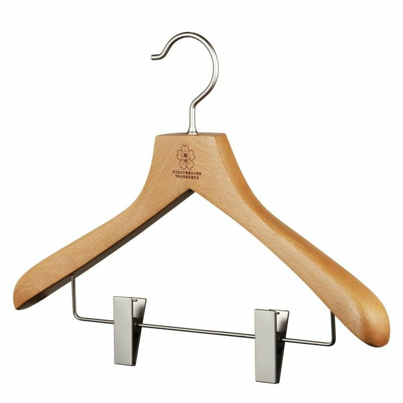 【通常価格・合計50セット~】名入れ 記念品 森を守るハンガー プレミアム ナチュラル 42cm植毛バー or 42cmクリップ 肩厚3cm