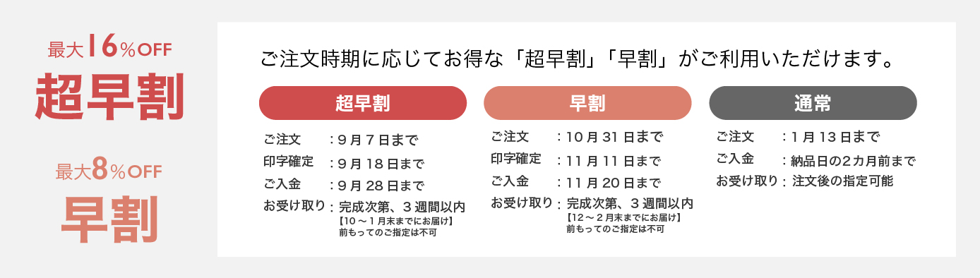 スペシャルプライスのため、名入れ作業終了後30日以内に発送とさせていただきます。