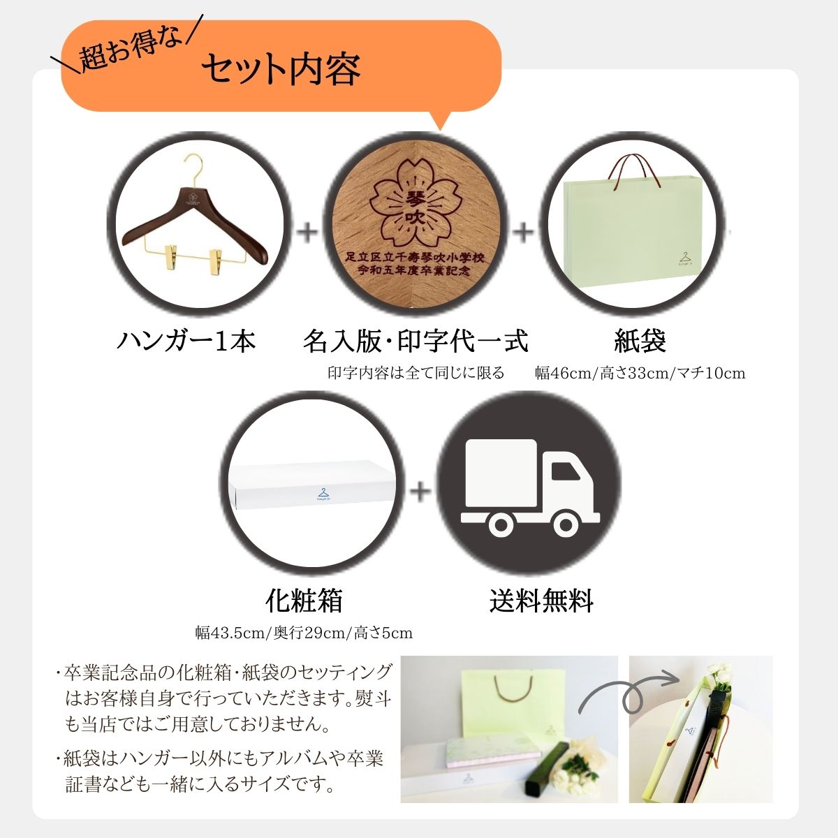 ハンガーに名入れ代、紙袋と化粧箱もついた「卒業記念セット」なら総額の計算が簡単!しかも送料無料です。