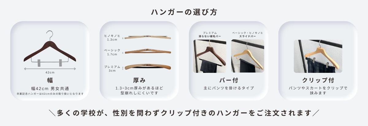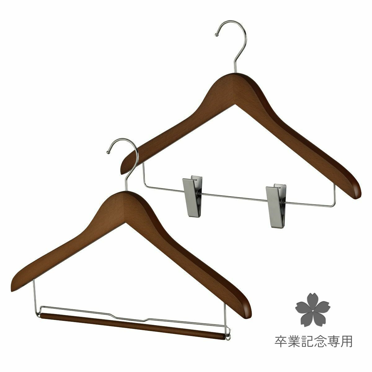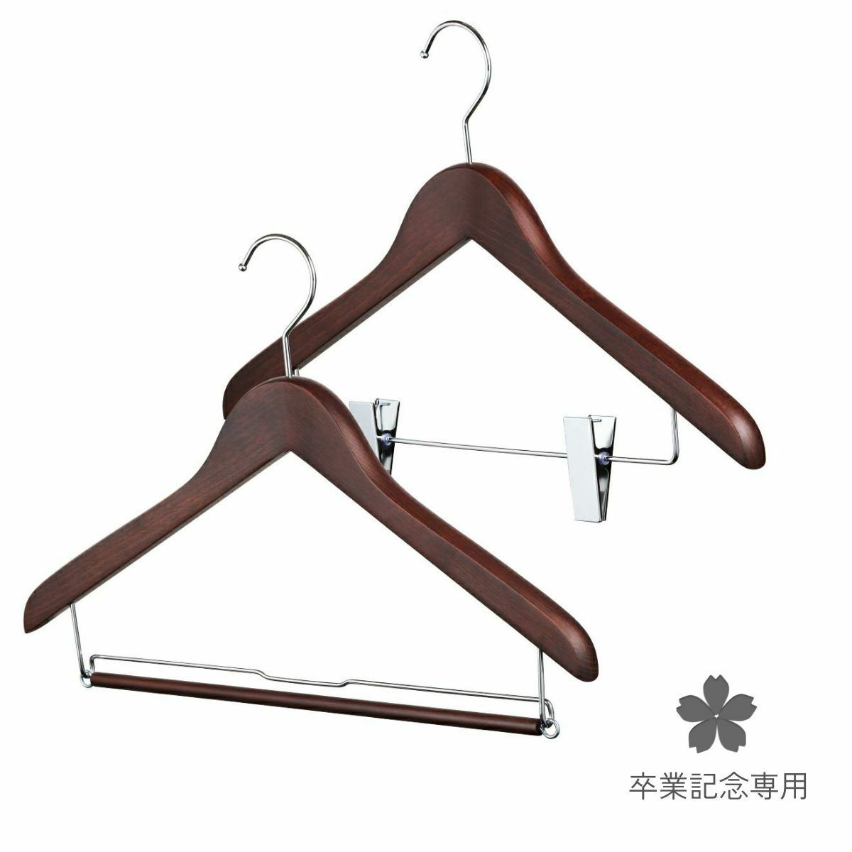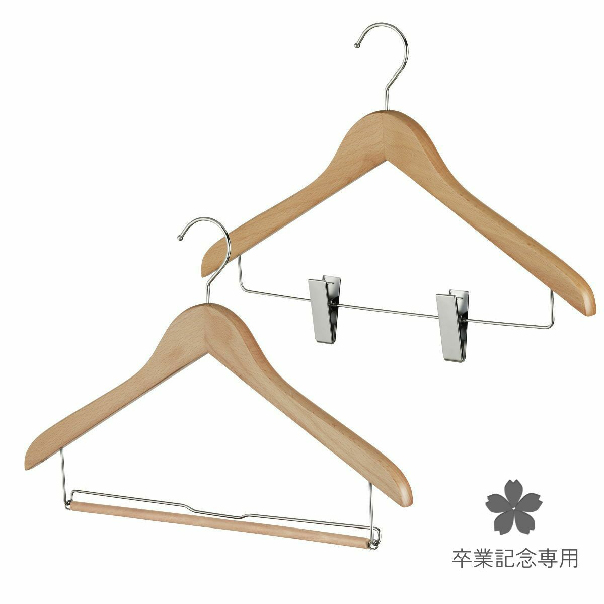 肩先にかけて「八」の字に広がるハンガーは、末広がりの縁起物。未来に向かって発展するという意味をもち、卒業記念にピッタリです。