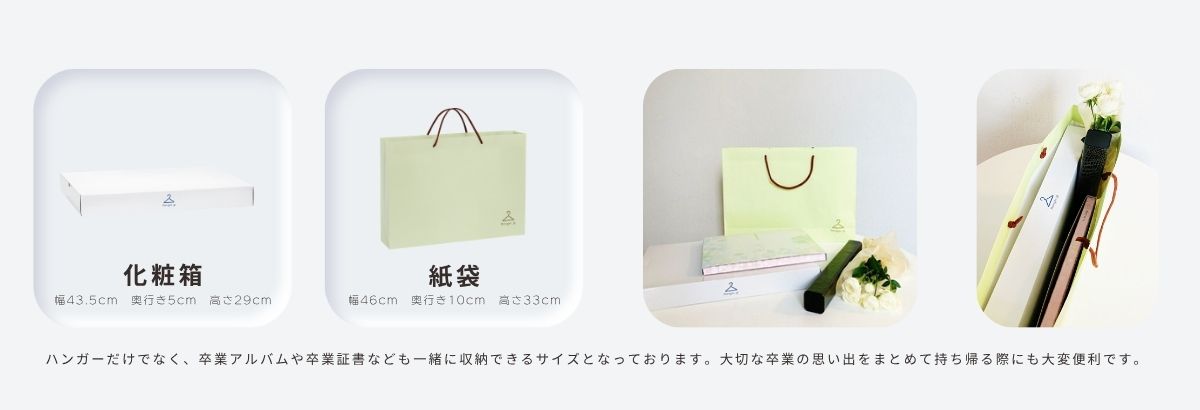 ハンガーに名入れ代、紙袋と化粧箱もついた「卒業記念セット」