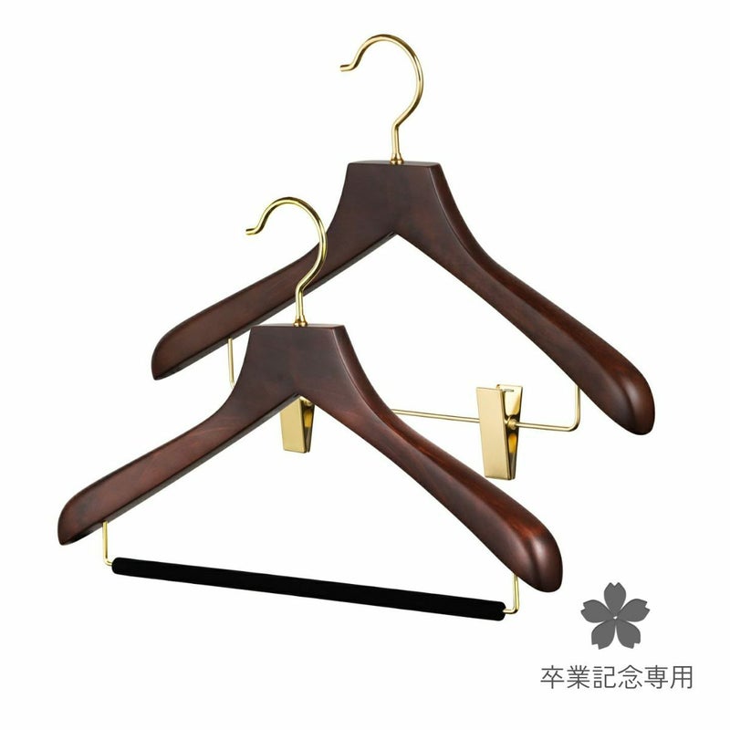名入れ可 卒業記念 【単品販売】卒業記念専用ハンガー 森を守るハンガー プレミアム ブラウン  42cm植毛バー or 42cmクリップ 肩厚3cm