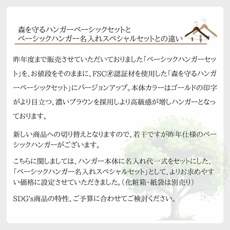 ハンガー本体 1本・ 名入れ代一式・化粧箱 1枚・紙袋 1枚(1セット) |
