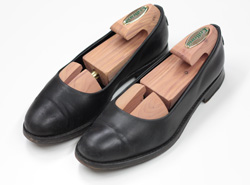 シューツリーを入れると、靴のシワが伸び、磨くときも靴が凹まずシワに入り込んだカビの除去もしやすくなります。