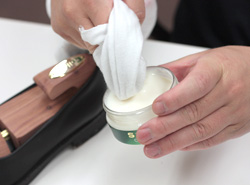 カビ汚れを落としたら、靴に栄養を入れ、保湿するためクリームを塗ります。