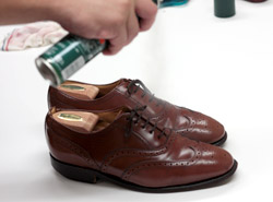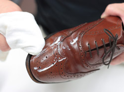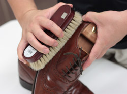 靴に光沢を出すため、乾いた布で磨き上げます。