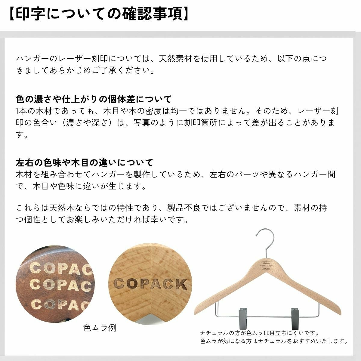 【レーザー刻印】木製プレミアムハンガー W42cm ナチュラル/ブラウン レーザー名入れ刻印セット