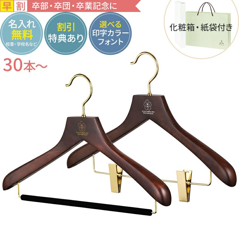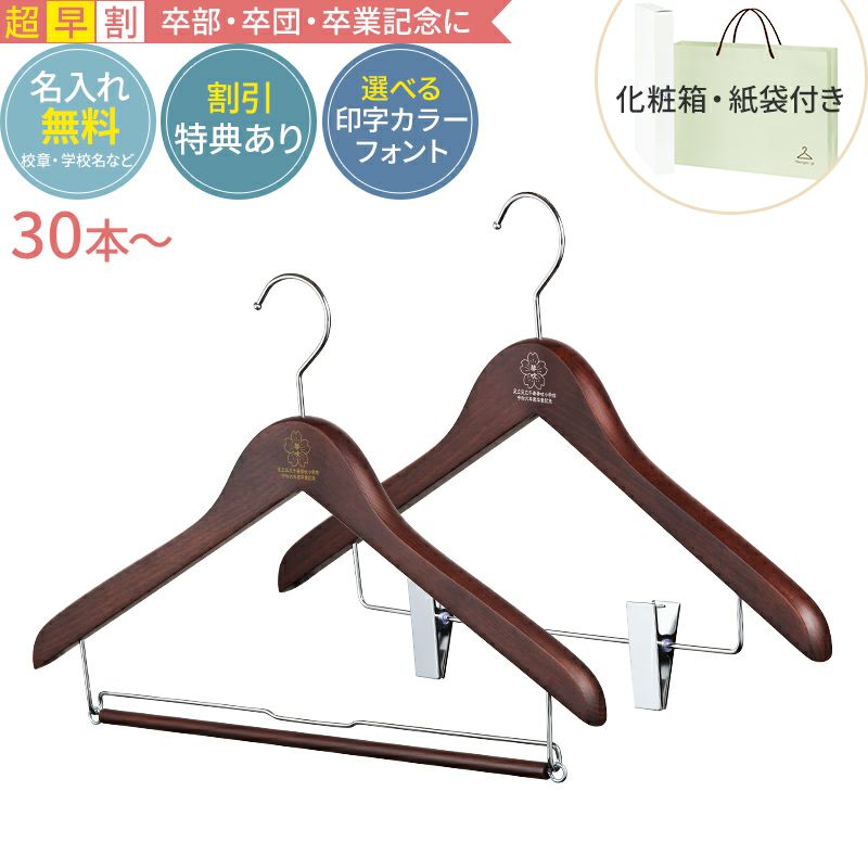 他の画像を見る ハンガー本体/名入れ代金/紙袋/化粧箱/送料すべて込み! 【早割・合計30~49セット】卒業記念ハンガー 森を守るハンガー ベーシックセット 42cm ブラウン 紙袋 箱付き 名入れ 木製ハンガー ながしお価格 ¥ 1,760 税込 販売を終了しました。 お気に入りに登録する
