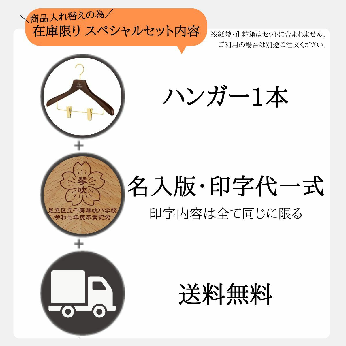 他の画像を見る ハンガー本体/名入れ代金/紙袋/化粧箱/送料すべて込み! 【早割・合計50セット~】名入れ 卒業記念ハンガー 森を守るハンガー プレミアムセット ナチュラル 42cm植毛バー or 42cmクリップ 肩厚3cm 紙袋 箱付き ながしお価格 ¥ 1,980 税込 販売を終了しました。 お気に入りに登録する