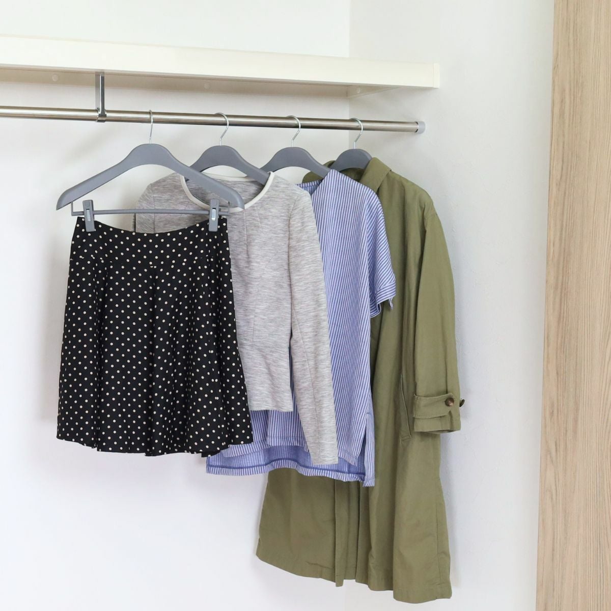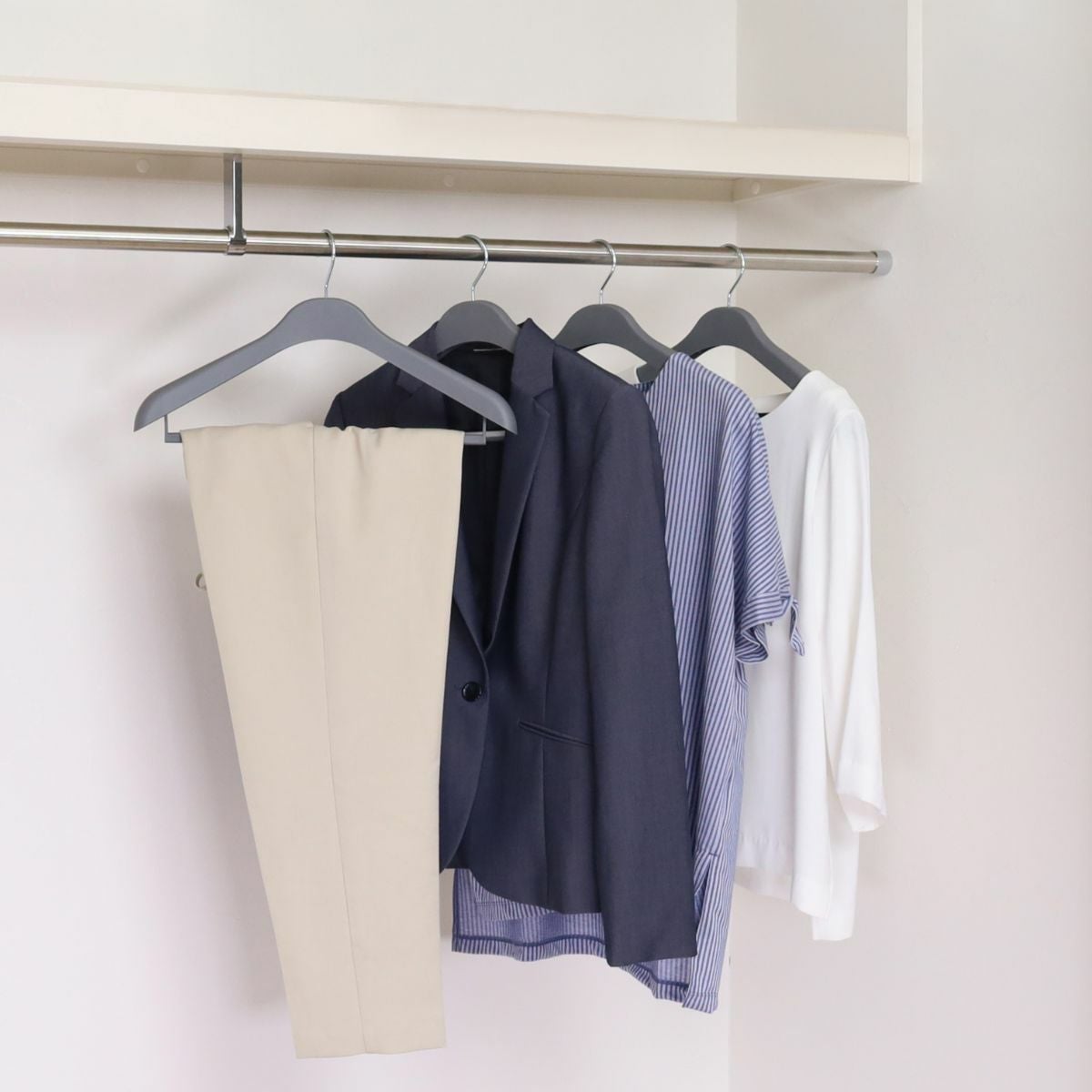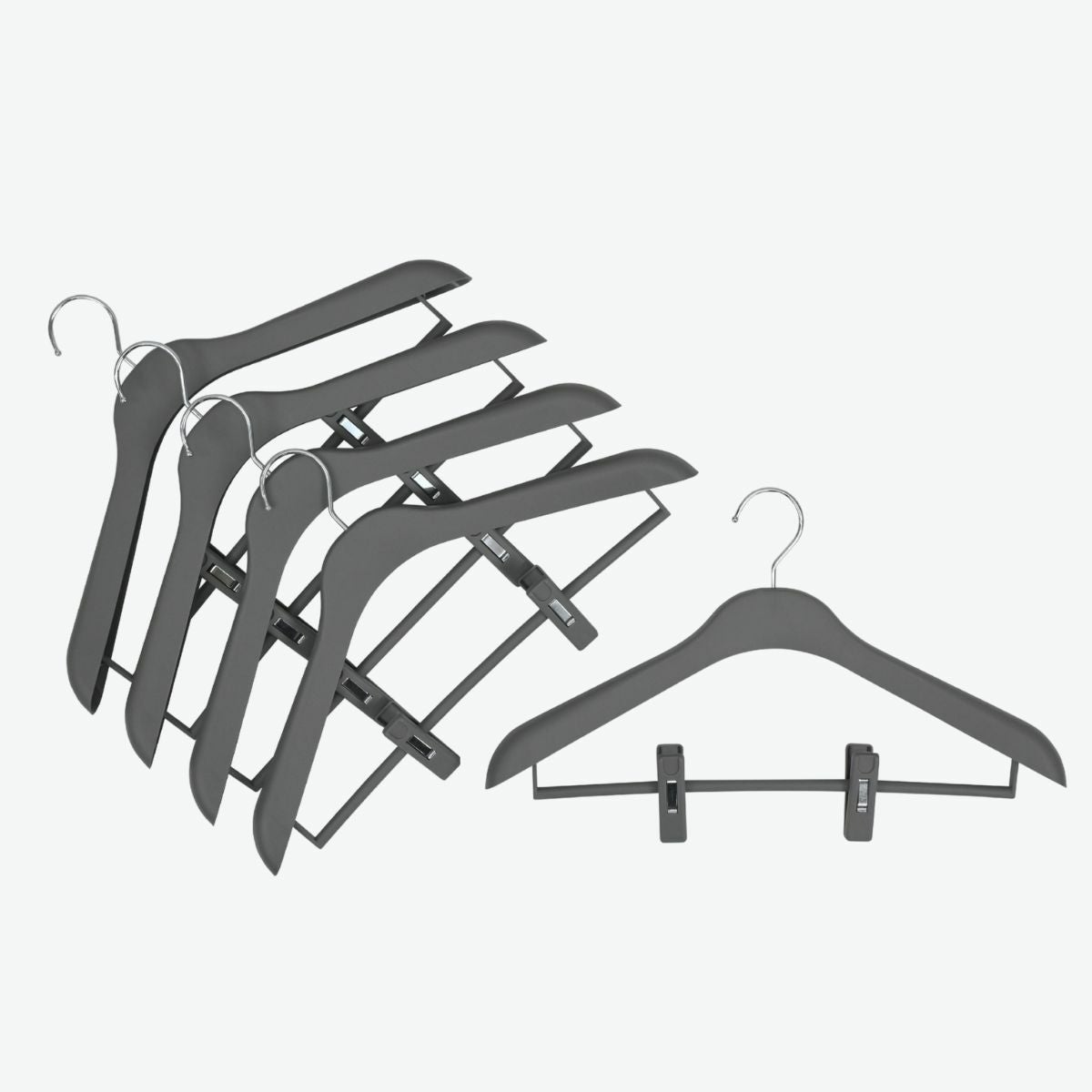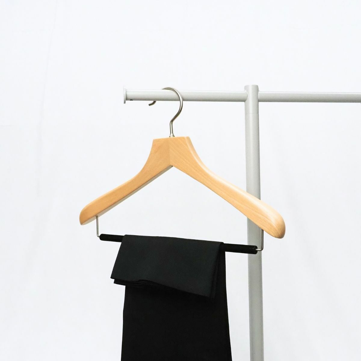 他の画像を見る 木製に見えるプラスチックハンガー URIK シャツハンガー クリップ付き ライトグレー 黒電着 W42cm T1.5cm プラスチック ながしお価格 ¥ 880 税込 お気に入りに登録する
