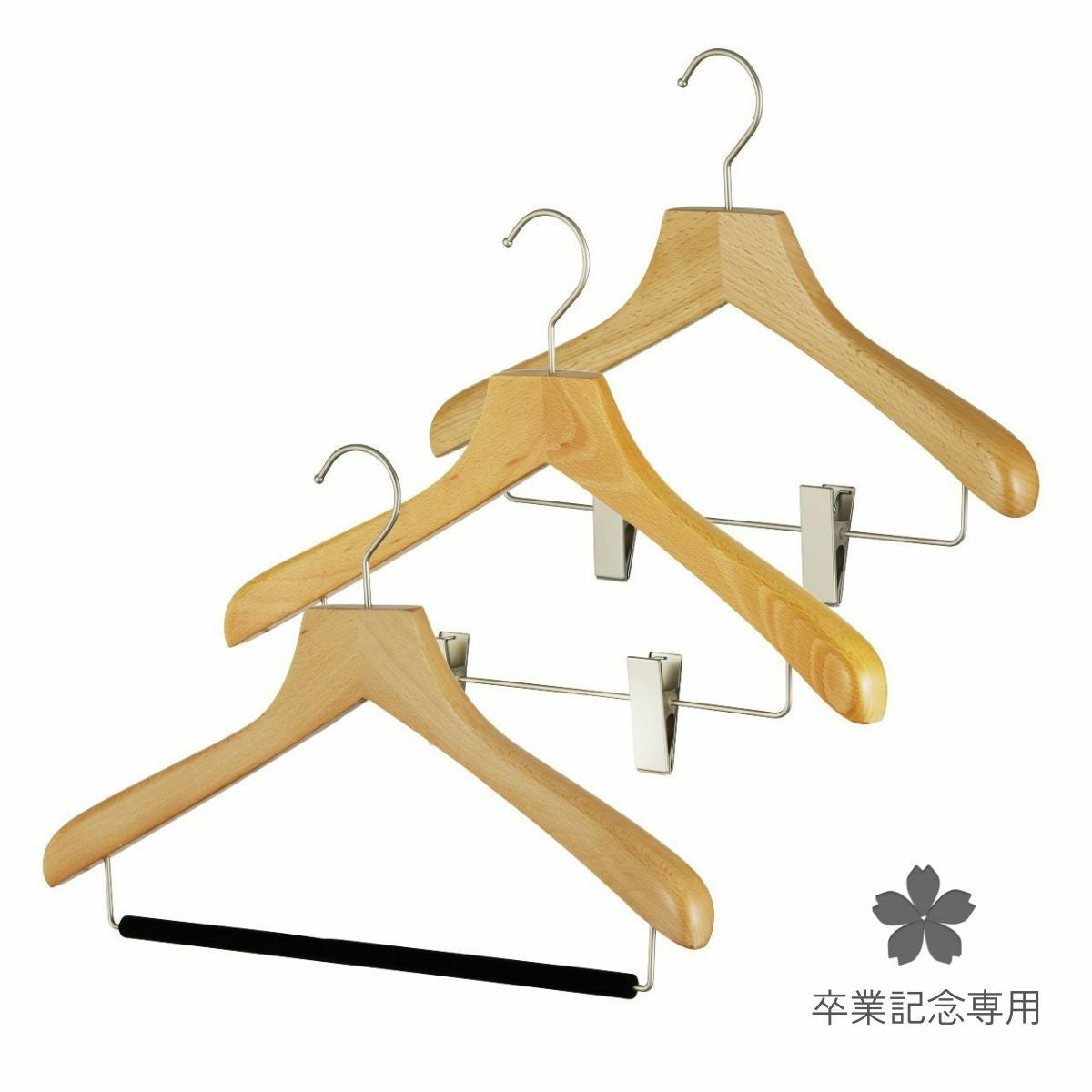 他の画像を見る 名入れ可 卒業記念 【単品販売 在庫限り】卒業記念専用ハンガー 森を守るハンガー ナチュラル 42cm植毛バー or 38cmクリップ or 42cmクリップ 肩厚3cm ながしお価格 ¥ 1,320 税込 お気に入りに登録する