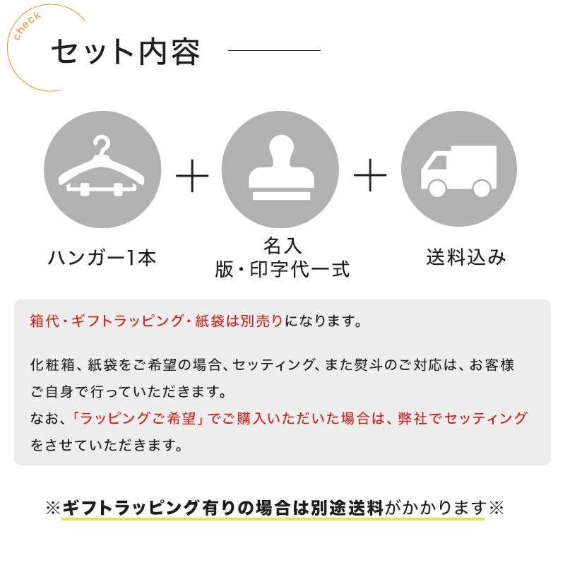 他の画像を見る ハンガー本体/名入れ代金/紙袋/化粧箱/送料すべて込み! 【通常価格・合計50セット~】名入れ 卒業記念ハンガー 森を守るハンガー プレミアムセット ナチュラル 42cm植毛バー or 42cmクリップ 肩厚3cm 紙袋 箱付き ながしお価格 ¥ 2,090 税込 お気に入りに登録する