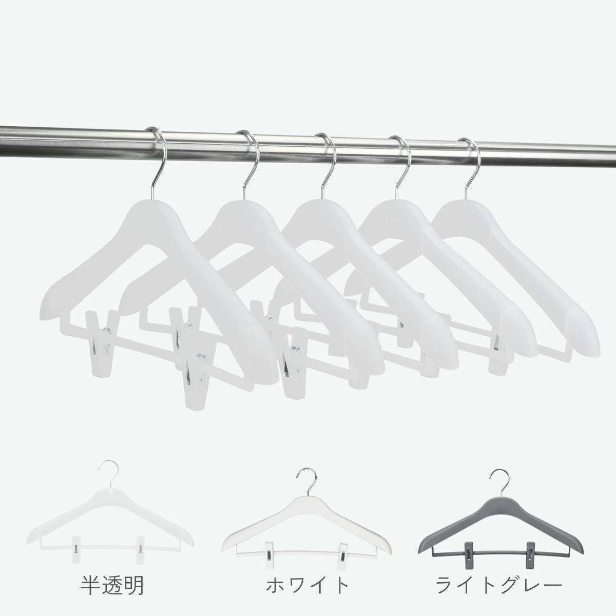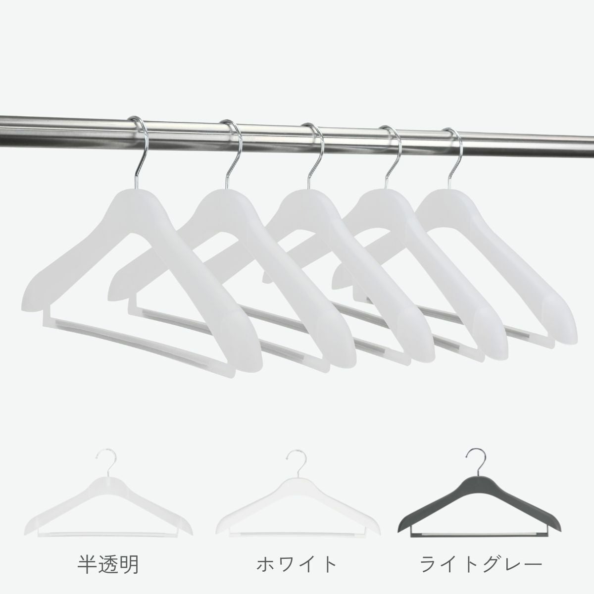 他の画像を見る サワフジ 型崩れ防止ハンガー すべり止め付 5本セット プラスチックハンガー 軽量 フォーマルカペラB 5P バー付き 全3色 半透明 ホワイト ライトグレー (FCB-42-5P) ながしお価格 ¥ 2,068 税込 お気に入りに登録する